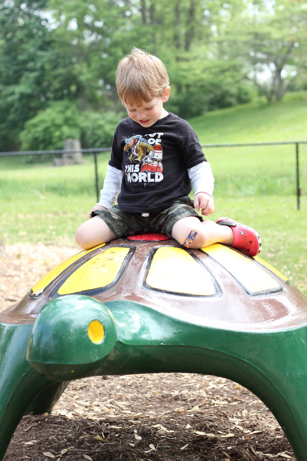 Friday afternoon when I picked up the boys, it was obvious that rain was coming. We stopped at one of our favorite parks on the way home. It's special to me because it was built with all kinds of kids in mind. It's wheelchair accessible, brand new, rarely busy, and just the right size. It has plenty for the boys to do but isn't so spread out that I lose sight of one of them if they go separate ways. When it's hot out, there are fun water features. Additionally, because it's wheelchair accessible, the playground area has that rubbery flooring stuff which means it's never muddy.